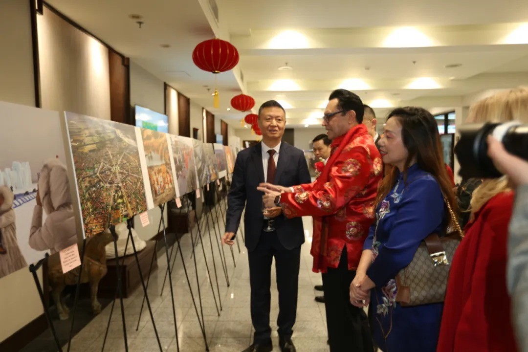 招待会现场播放专题纪录短片《四十不惑 初心弥坚》,全景式展现总领馆40年精彩岁月。来宾们欣赏传统民乐、歌曲颂唱、戏曲联唱、中国古典舞、童声合唱等精彩文艺表演,观看新疆、西藏经济社会发展主题图片展,沉浸式体验写春联、剪纸、面塑等中华传统民俗展示,现场气氛欢乐祥和热烈。