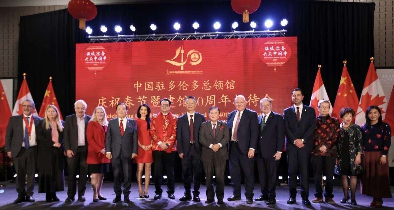 新华网多伦多1月17日电(程韵如)近日,中国驻多伦多总领馆举办2025年春节暨建馆40周年招待会。加拿大三级政府代表、领区华侨华人、中资机构和留学生代表以及当地各界人士等近600人出席。
